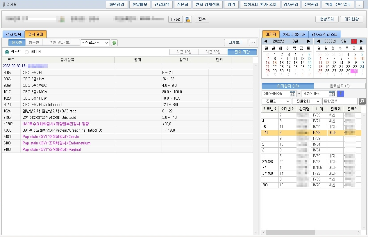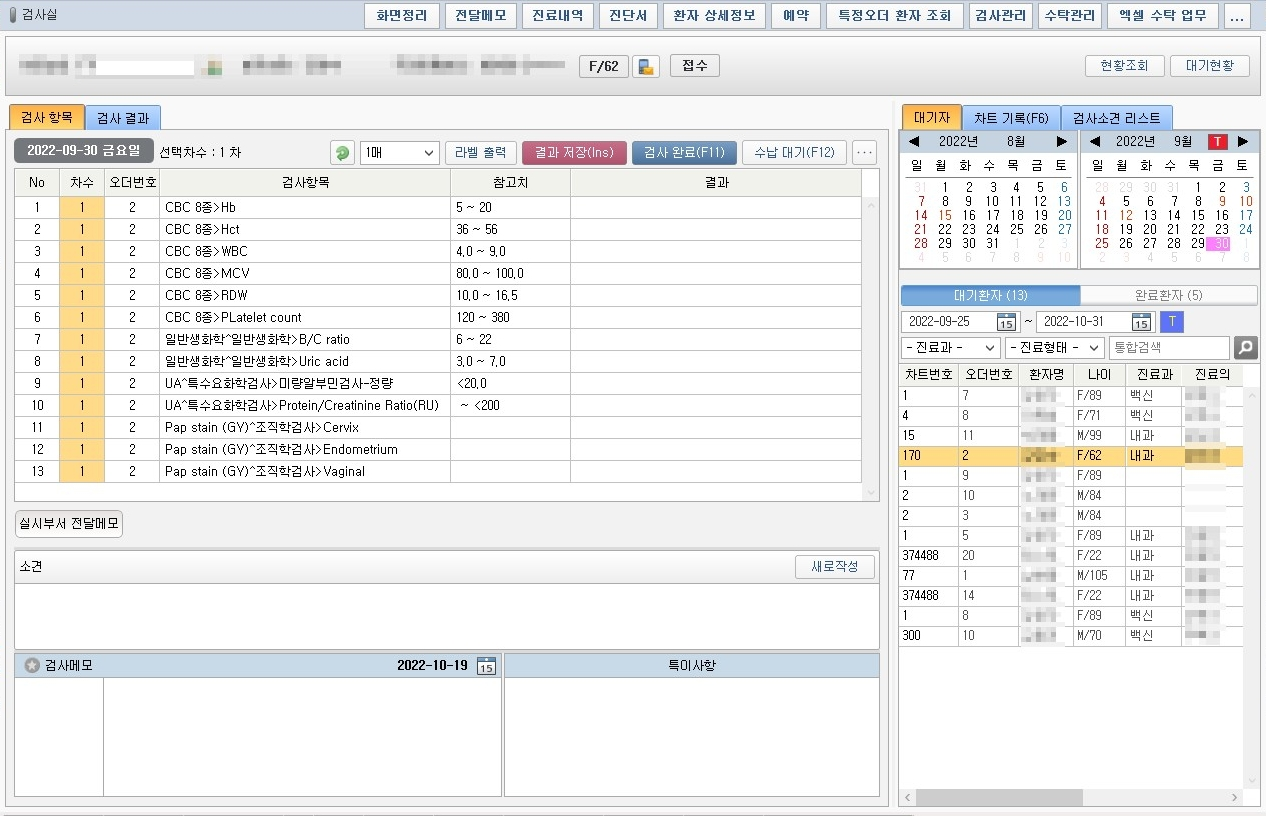 | 1) 검사실 화면 참조