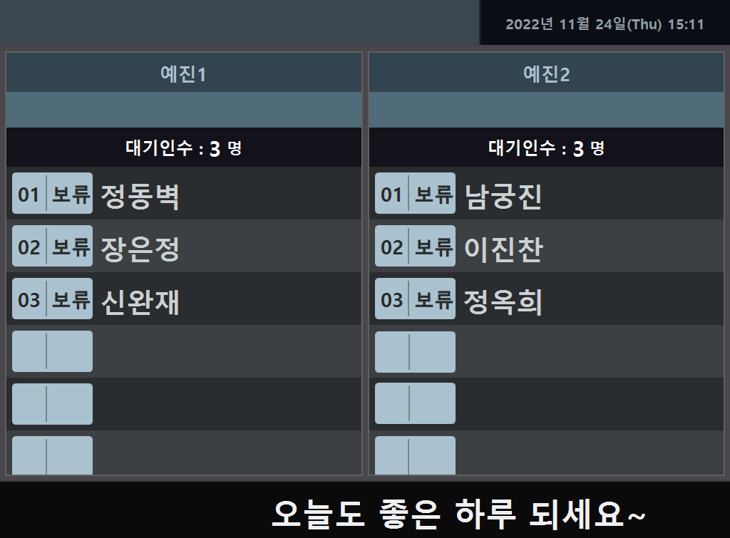 5) 차트 프로그램에서 예진실 변경 시 대기자콜에 대상 환자 표시