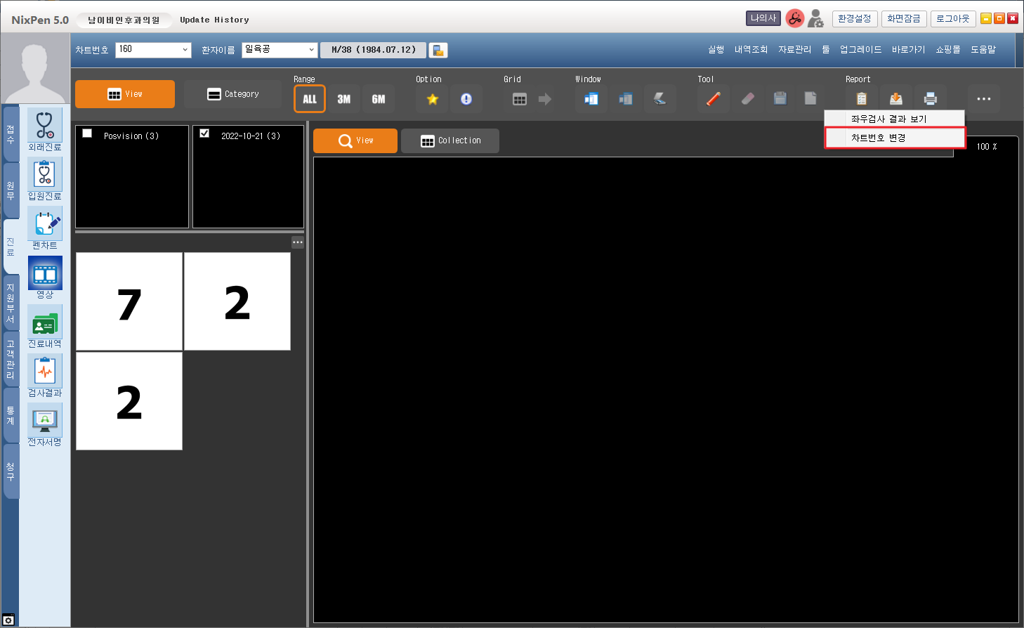 2) 환자 불러오기 후 [..] 버튼 Click - [차트번호 변경] 메뉴 선택
