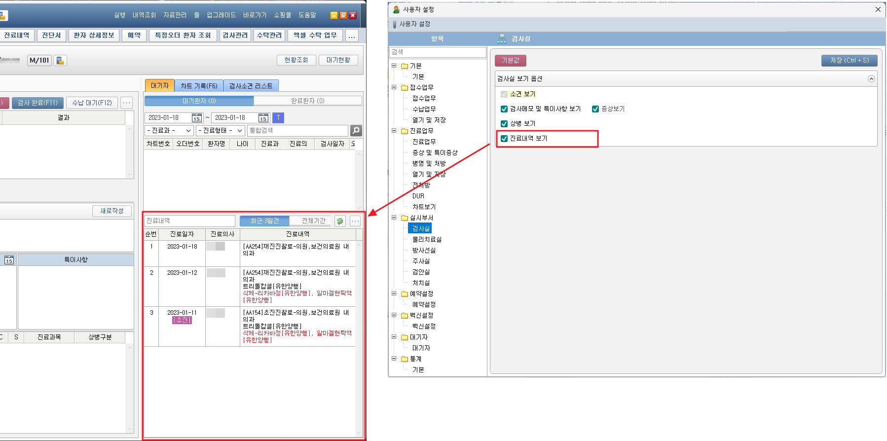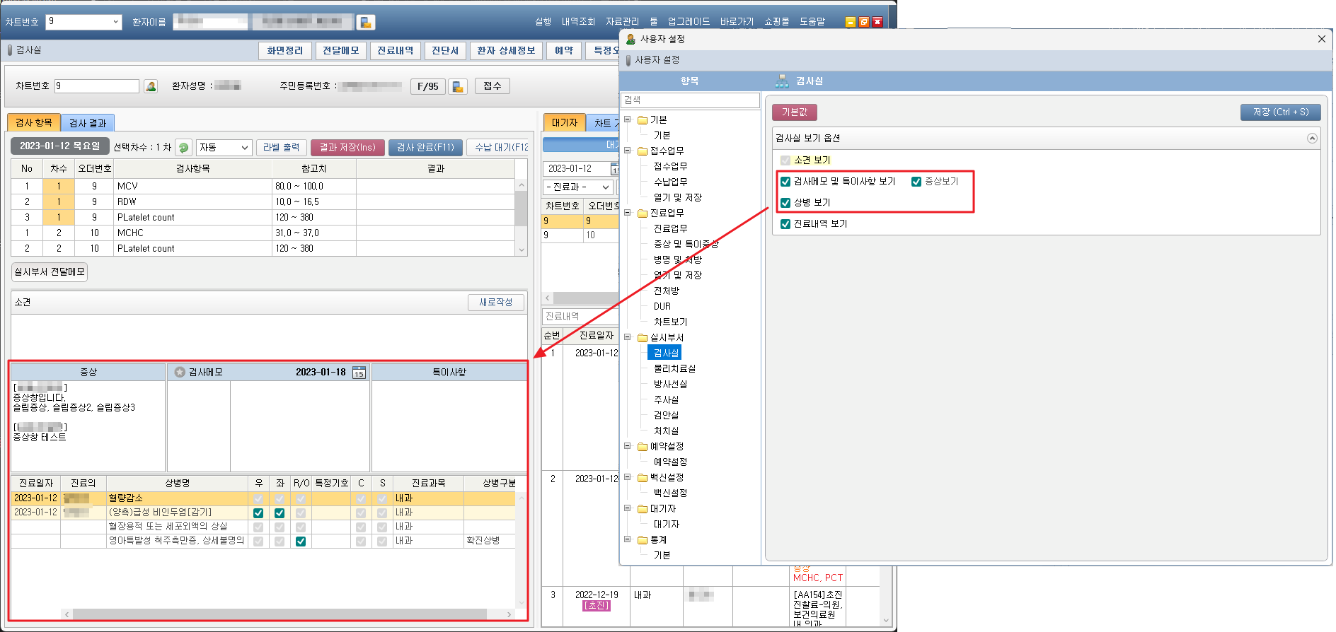 검사실 - 증상보기, 상병보기 옵션 기능 추가