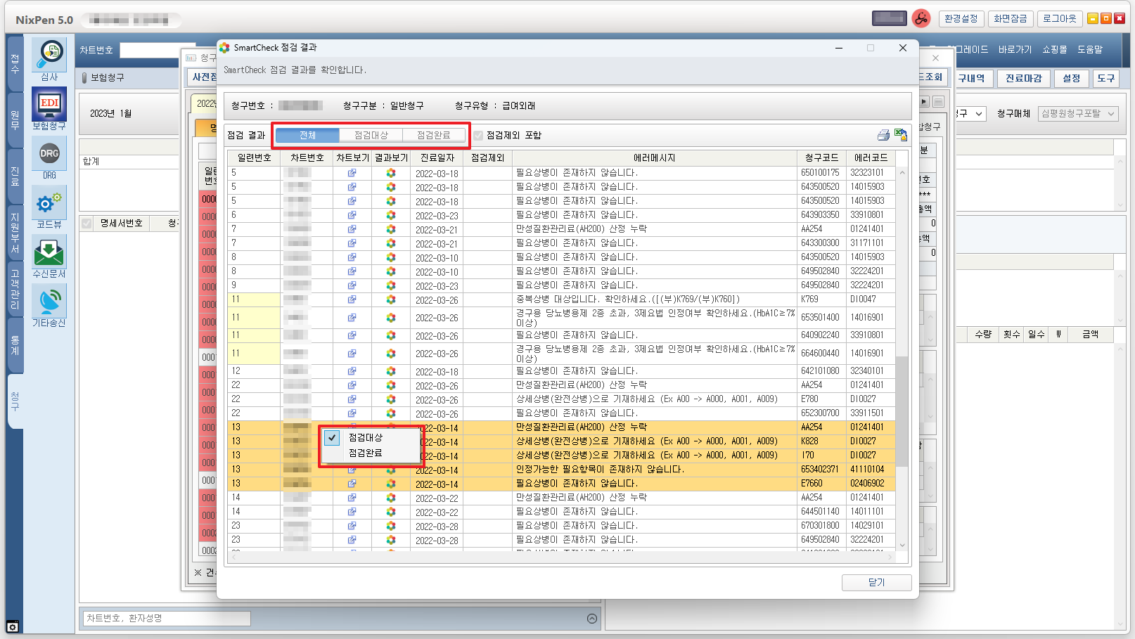3) 검사정보 등록 창에서 대상 수가코드 불러오기
