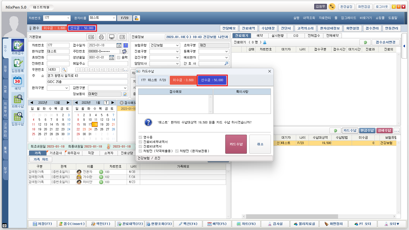 1) 수납상세 창 또는 외래진료/외래접수 화면 참조