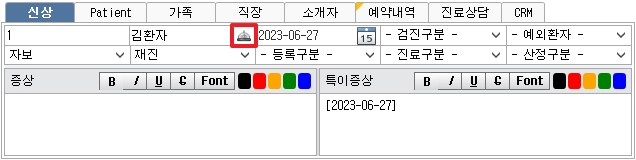 - 진료업무 사용자 설정에서 신상 환자명 우측에 대기자 호출 버튼 표시 옵션을 설정합니다.