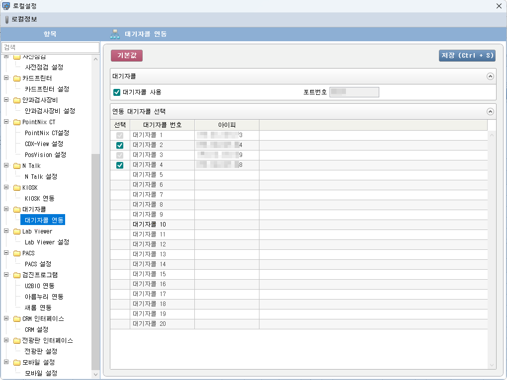 - 대기자콜 로컬 설정에서 연동 대상 대기자콜 IP 를 지정합니다.