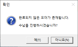 - 수납업무 사용자 설정에서 미완료 오더 존재 시 알림 옵션을 설정합니다.
