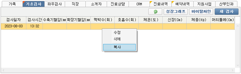 - 원무 - 기초검사 목록 우클릭 시 복사 하여 추가할 수 있도록 메뉴 추가