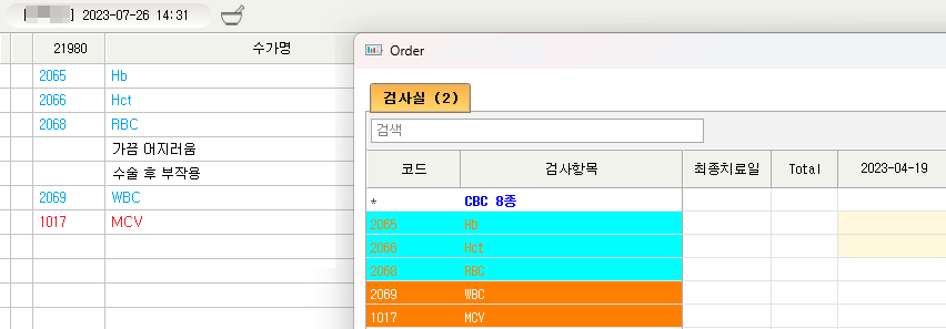 - 진료 - 오더 창에서 수탁 검사를 구분할 수 있도록 글자색 다르게 적용