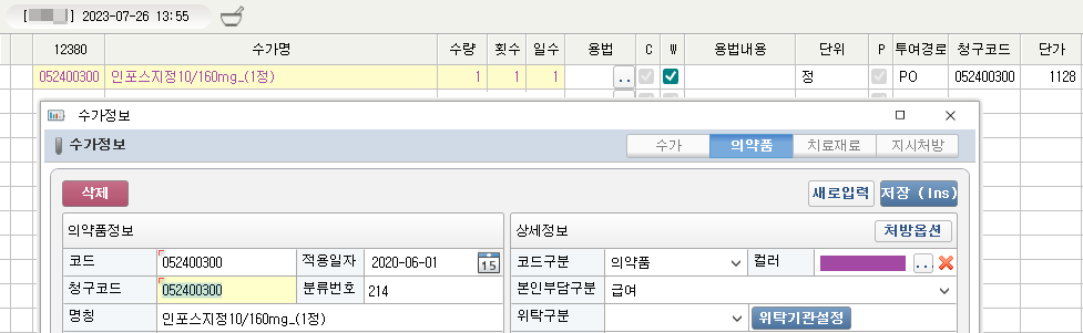 - 진료 - 처방 시 수가 정보에서 지정한 글자색이 우선 적용되도록 기능 보완