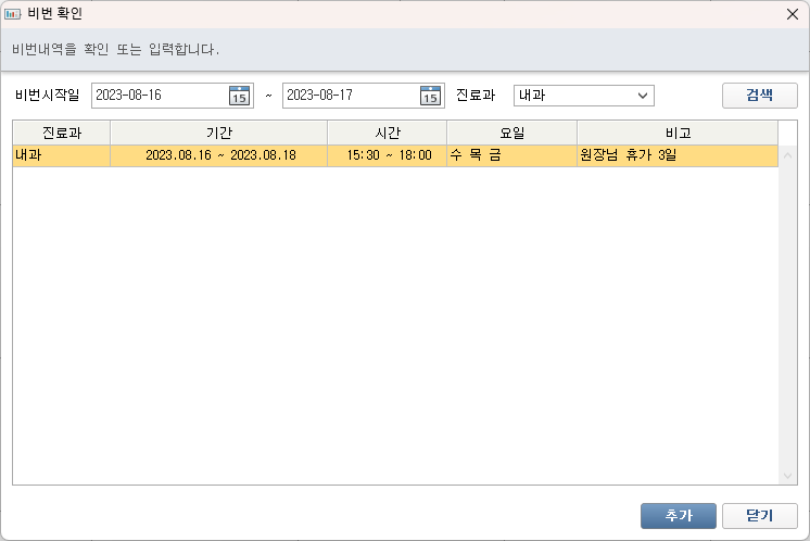 - 전처방 표시 시작 일자 이전 진료 내역이 전처방에 표시되지 않습니다.