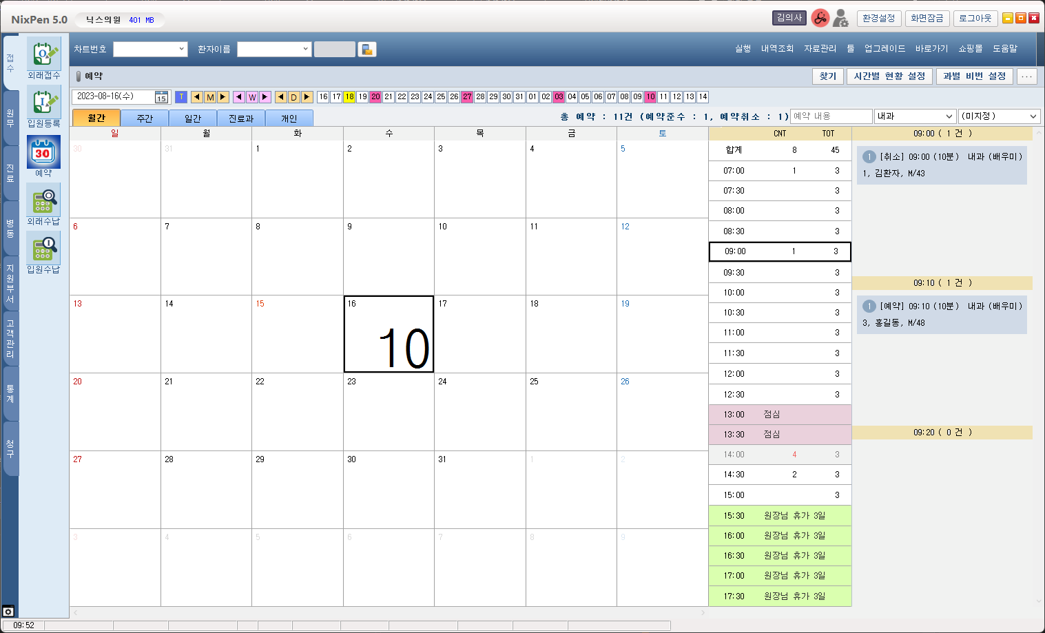 - 대상 시간 더블 클릭 시 예약을 바로 입력할 수 있습니다.