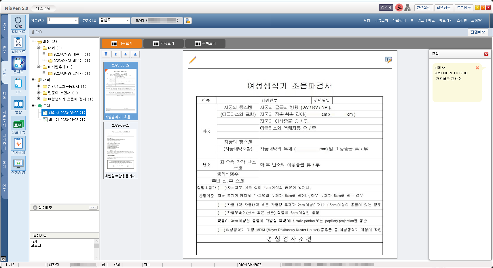 - 환자에 대한 펜차트 기록 을 작성 및 조회합니다.
