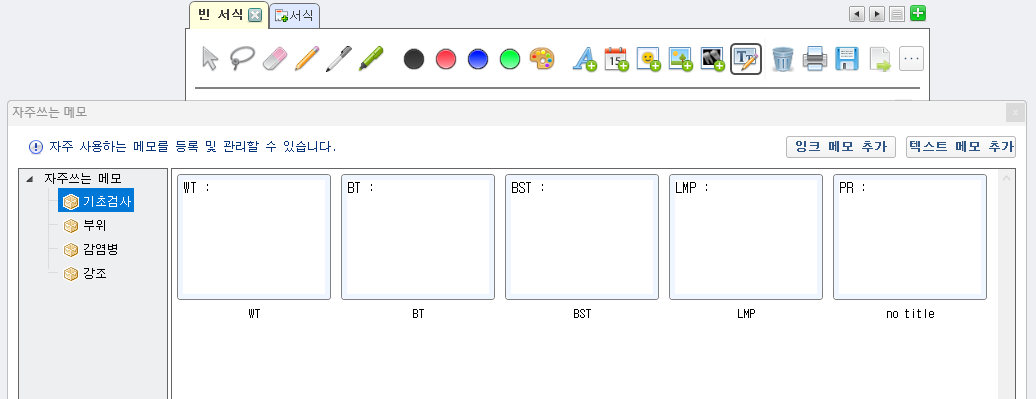 - 펜차트 상용구 관리 창에서 자주 쓰는 메모를 등록합니다.