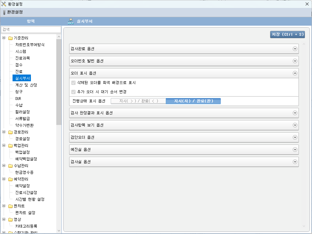 - 실시부서 환경 설정에서 오더 진행 상태 표시 옵션을 설정합니다.