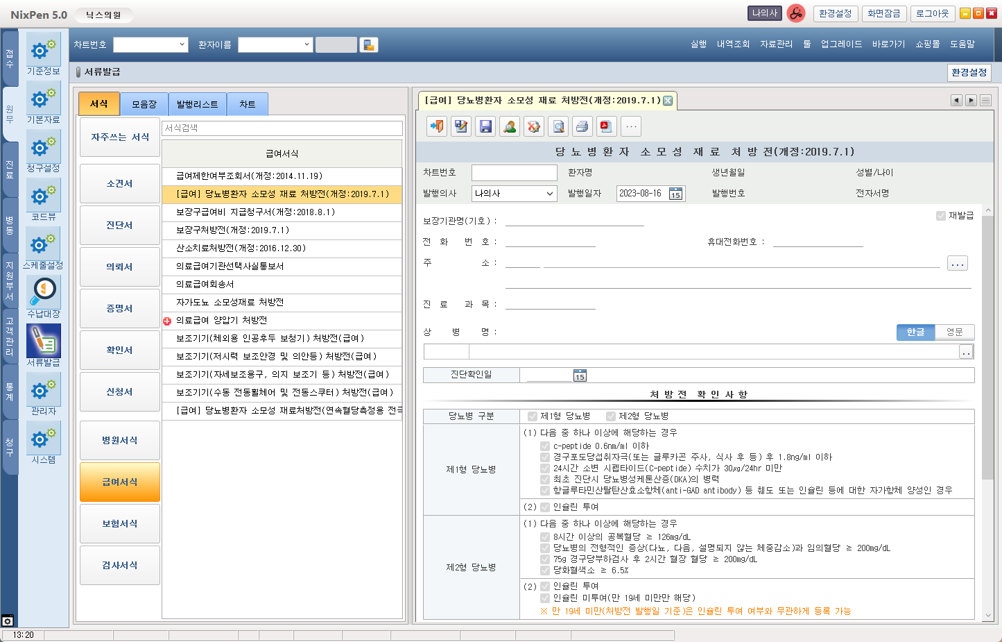 당뇨병 환자 소모성 재료 처방전 개정 서식 적용