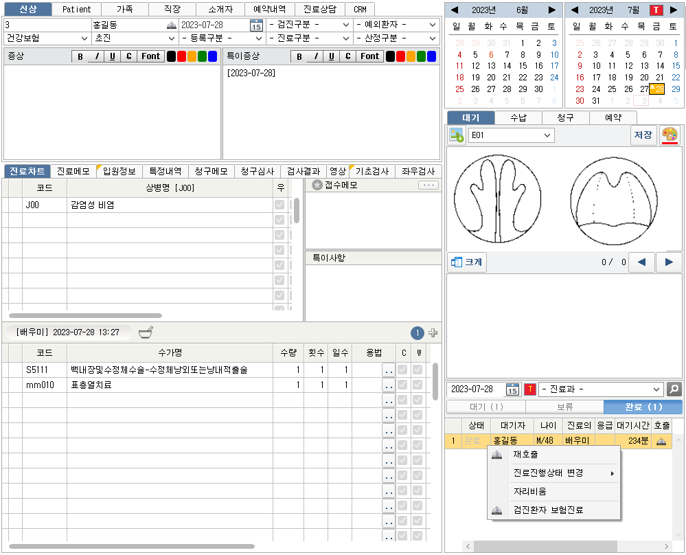 - 로그인 사용자가 의사인 경우 검진 환자 우클릭 시 검진환자 보험진료 메뉴가 표시됩니다.