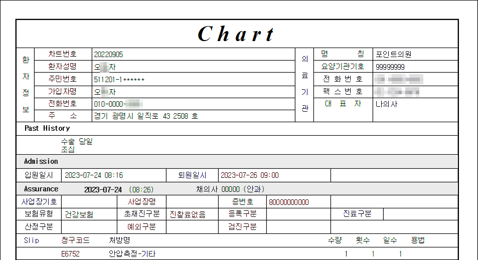- 원무 - 차트 기록지 입퇴원 시간 출력 기능 지원