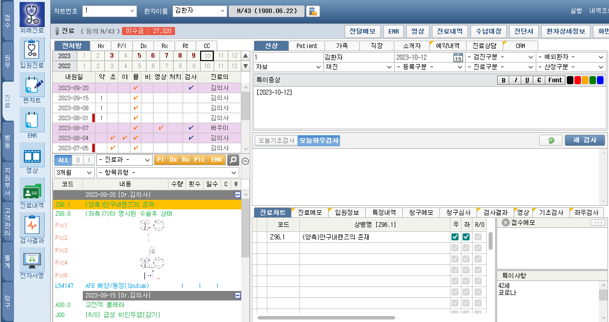 - 원무 - 입원 등록 화면에 검안 오더 기능 추가