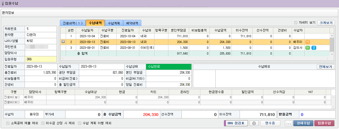 - 원무 - 입원 수납 건 DRG 점검표 작성 기능 추가