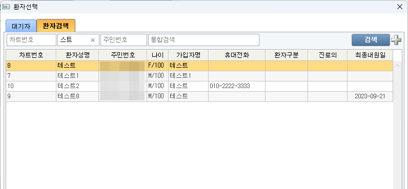- 원무 - 환자 색인 시 성명 기준 전체 검색 옵션 지원