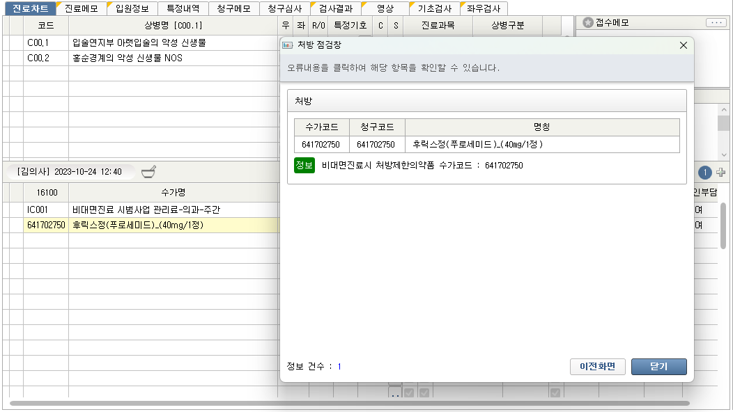 - 진료 - 청구 내역에서 환자명 더블 클릭 시 진료 명세서 창이 닫히지 않도록 기능 보완