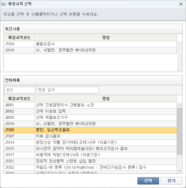 - 진료 - 수동 기재 특정내역