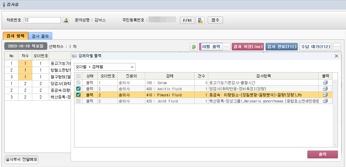 - 검사실 - 검체 라벨 출력 옵션 창 지원