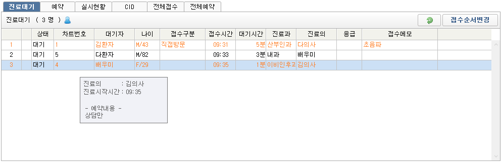 - 원무 - 진료 대기자 목록