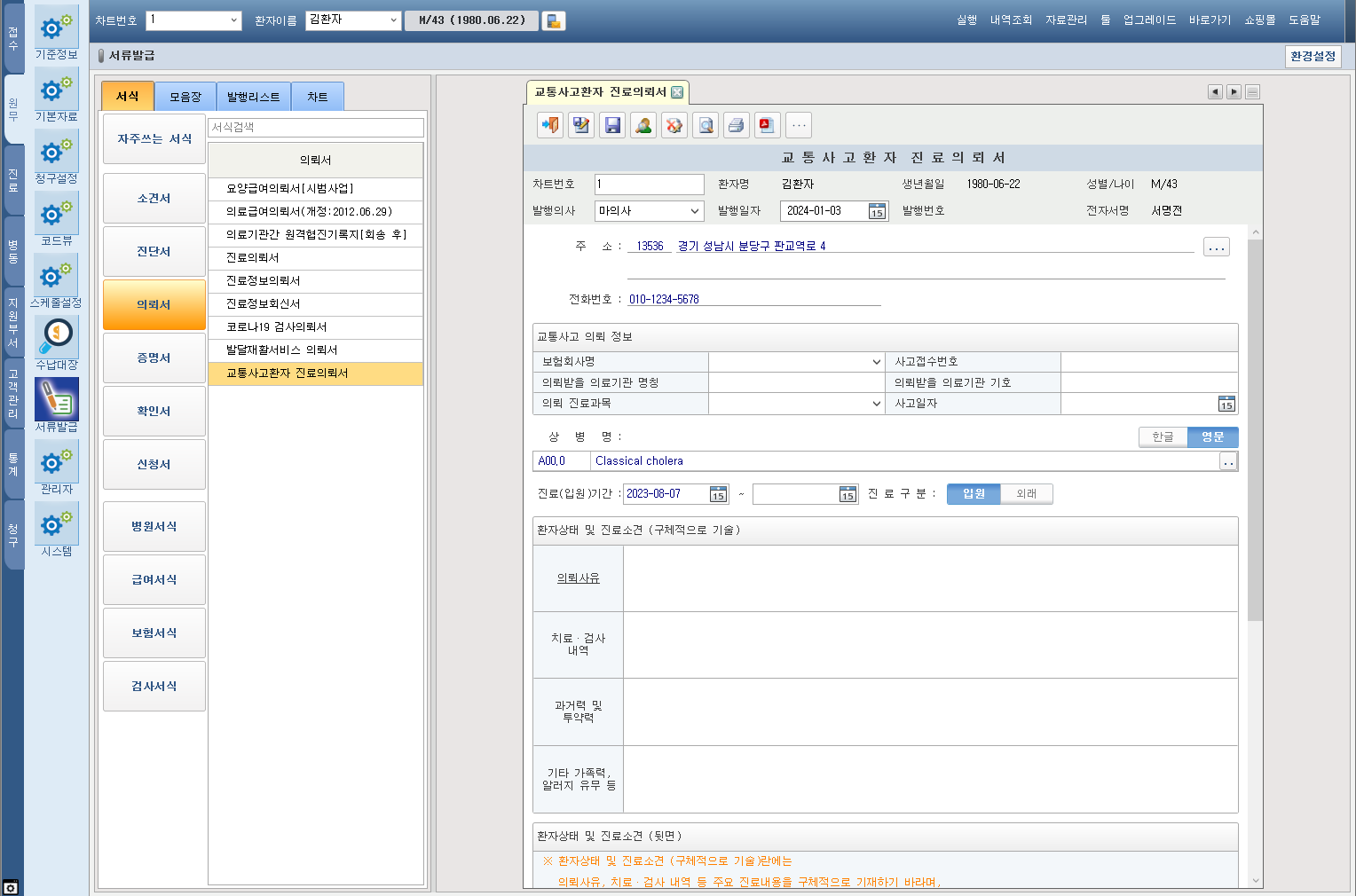 - 환자 인적사항 추가 입력 후 저장 또는 접수 를 진행합니다.