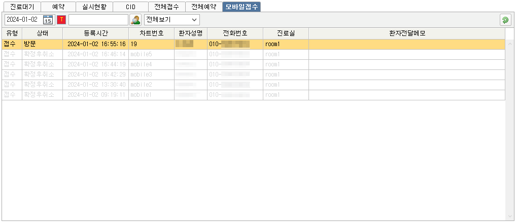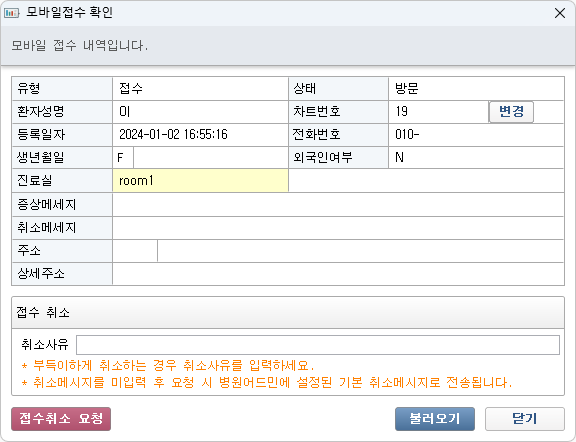 - 원무 - 모바일 접수 확인 창 진료실 추가 표시